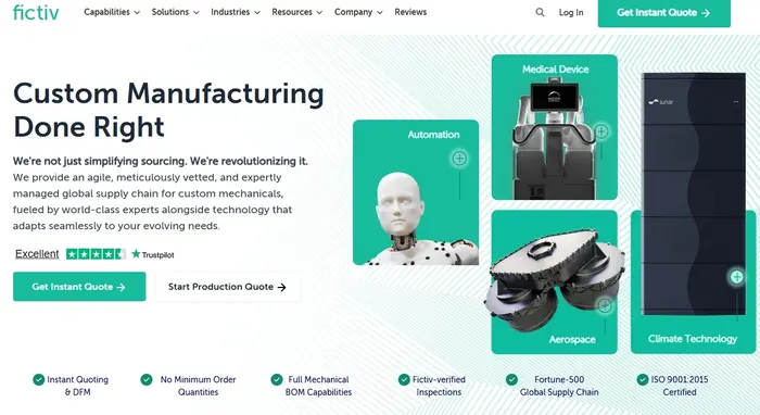 Fictiv specializes in high-precision and high-standard manufacturing, excelling in the aerospace and medical device industries.